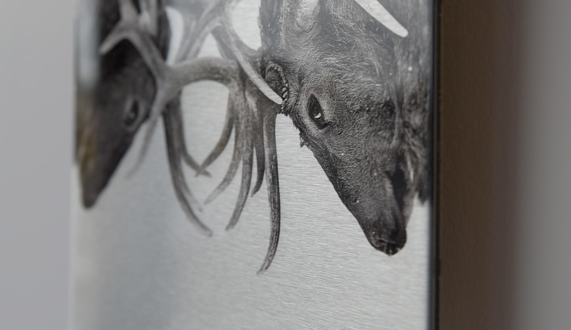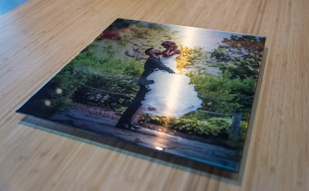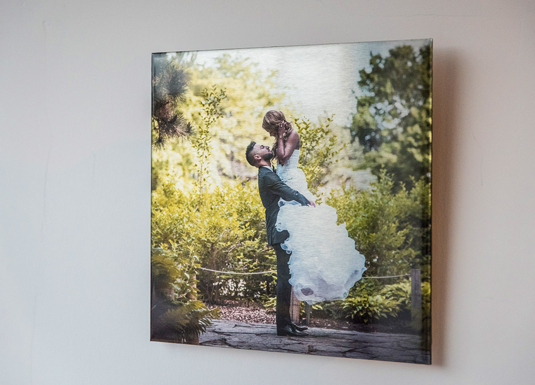 We provide a unique combination of brushed metal look with a thick, glossy topcoat that graces the surface of your image for that gorgeous modern look